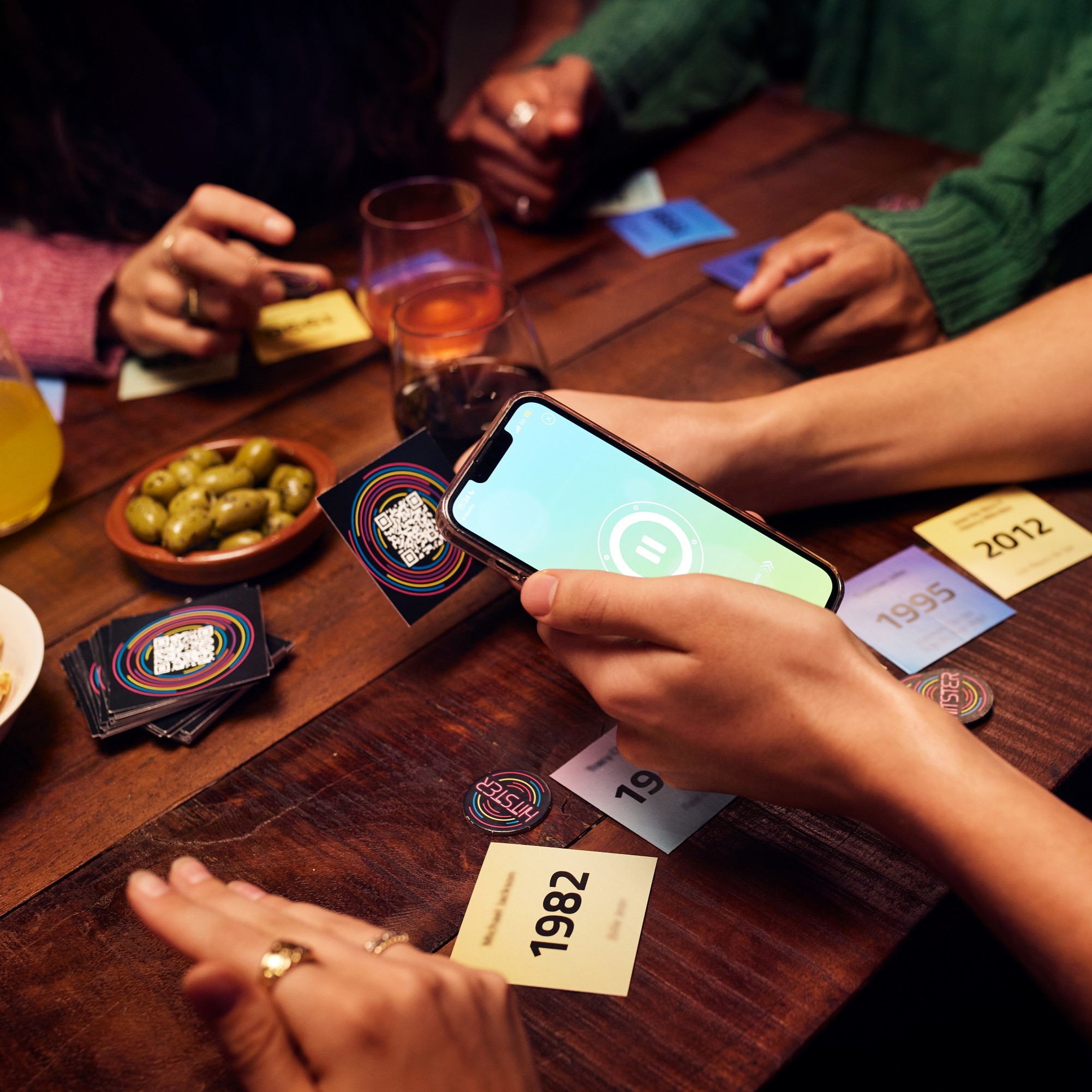 - Each player/team receives one music card (face up), which shows the song title, artist, and release year. This is the side without the QR code, and it starts their timeline. The player with the oldest song on their timeline starts, and the game continues clockwise.